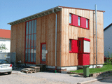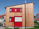 konventionellen Bauträger- Die hochgedämmten Außenwände erhielten innen zusätzlich eine massive Vormauerung aus Lehmsteinen und eine mit Lehm verputzte Wandflächenheizung. Dadurch hat das Haus trotz "leichter" Holzkostruktion eine hohe Masse, also ein ausgeglichenes Raumklima, das durch den hohen Lehmanteil auch im Hinblick auf Luftfeuchtigkeit optimiert ist. Eine Holzpelletheizung mit Solarunterstützung rundet das ökologische Gesamtkonzept ab und war in Anbetracht der Ölpreisentwicklung sicher auch finanziell die richtige Entscheidung. Das Projekt beweist, dass auch eine einfache Gebäudeform und ein optimierter Grundriss ansprechende Fassaden ermöglichen und erheblichen Spielraum lassen für individuelle und ökologische Ansprüche sowie hohen Wohnkomfort, ohne dass die Kosten höher sein müssen als bei einem "konventionellen" Haus. |