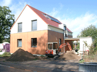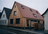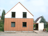Das Fachwerk diese Hauses war noch nie sichtbar gewesen, sodass bedenkenlos eine Außendämmung aufgebracht werden konnte. Dabei entstand eine spannungsvolle Zweischichtigkeit ... |